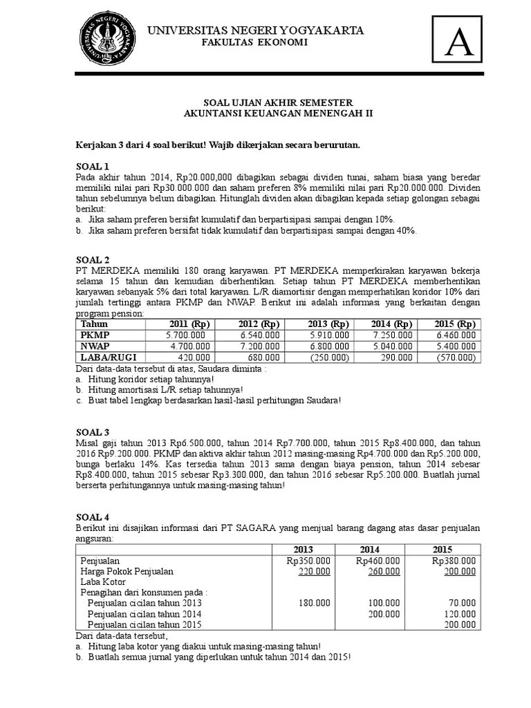 Kumpulan soal pilihan ganda materi akuntansi keuangan menengah.